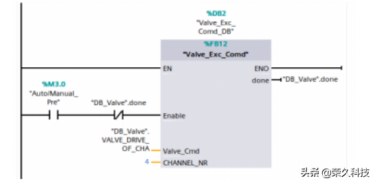 前者 FB12 内部的变量总会被扫描,而后者在 M3.0 或 DB_Valve.done 为 1 时,内部变量不会被扫描;相应的,前者 done 变量将被下一扫描周期置 0,而后者 done 置 1 后将因能流不通不能扫描而自行保持;