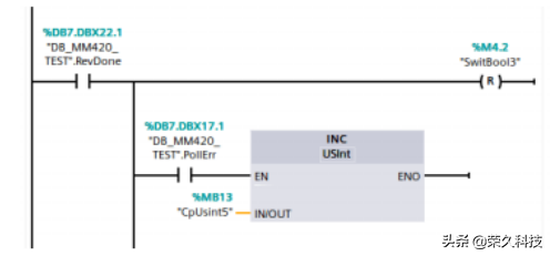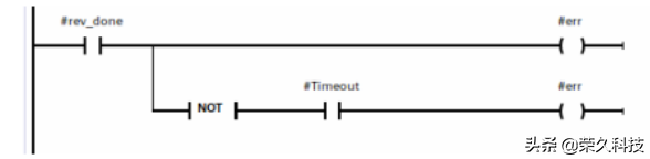 程序初衷为当接受响应完成时 ERR 置位,或响应超时 ERR 置位。上述程序是可以完成正常功能的;但若二者互换,如下图:
