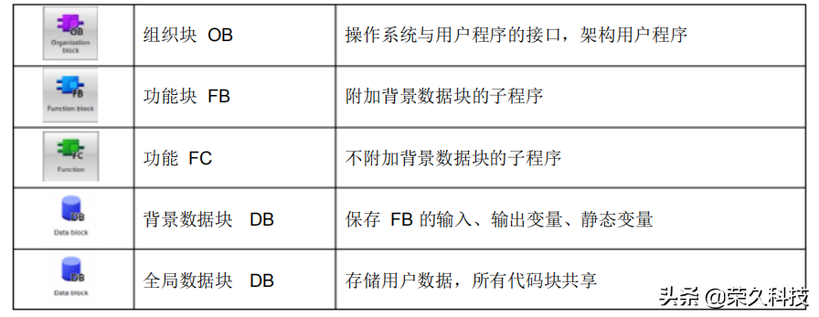 功能块 FB(function block ):子函数,内部含有静态变量,须附加背景数据块 DB,多数情况下需要多个扫描周期内执行完毕。