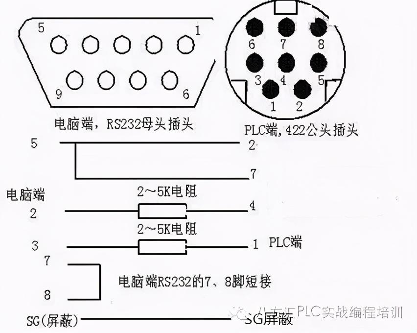 电脑与PLC/CQM1H系列的编程电缆XW2Z-200S-CV的制作PLC-PC:2-2 3-3 4-8 5-7 9-5LG PLC编程电缆制作方法使用RS232 串行口和屏蔽电缆制作。公2(白)〈-----〉母3(白),公3(黄)〈-----〉母2(黄)公5(红)《-----》母5(红),屏蔽层加护套焊接在金属外壳上。以上颜色为自定。假如线径太细接口卡不牢,可以先用电工胶带固定和加粗厚再安装接口外壳。