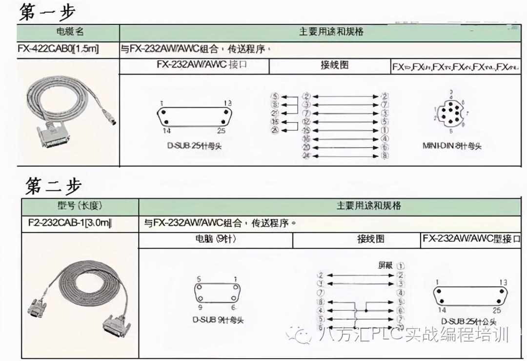 用于三菱FX1S、FX1N、FX2N、FX2NC及A系列PLC编程使用。第一步:制作一根FX-422CABO。