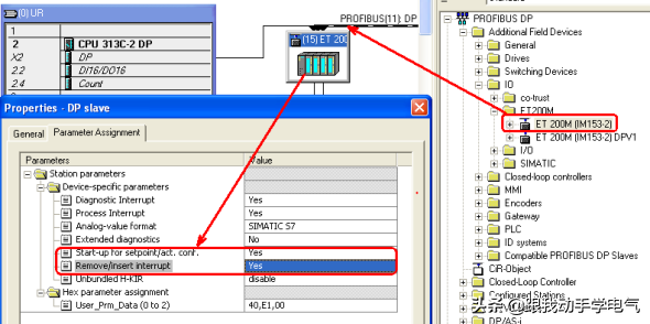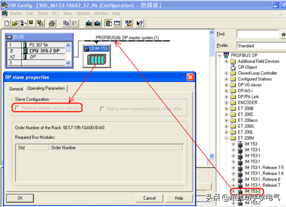 添加IM153-2模块到PROFIBUS总线上,设置热插拔选项