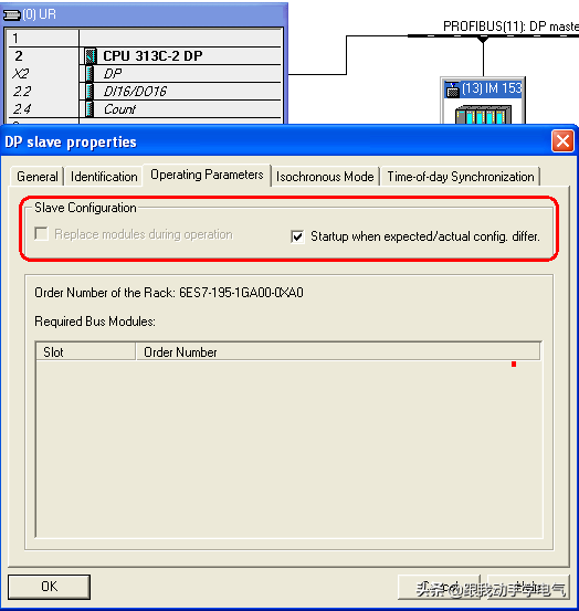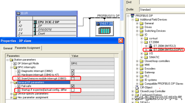 注意,GSD文件有DPV0和DPV1之分。但是S7-300的组态时,只有用DPV0可以实现热插拔的功能(如上图),如果用DPV1组态只支持“Startup when expected/actual config. differ.”的功能, 如下图,这是因为 DPV1 "Insert/Remove module"功能,是通过OB83实现的,S7-300不支持OB83。S7-400使用DPV0 DPV1均可。