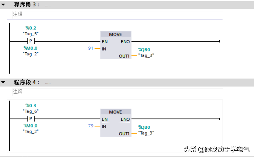 今天跟大家通过实例来看看MOV指令的使用,本文主要通过三菱PLC和西门子博途来看看MOV指令的使用。