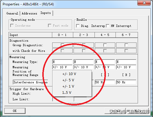 根据现场设备,选择合适的量程,如果是测量温度的话需要使用特定的温度模块,并选择合适的温度信号。对于温度的控制,我们以前文章有介绍过,需要的朋友可以去寻找。
