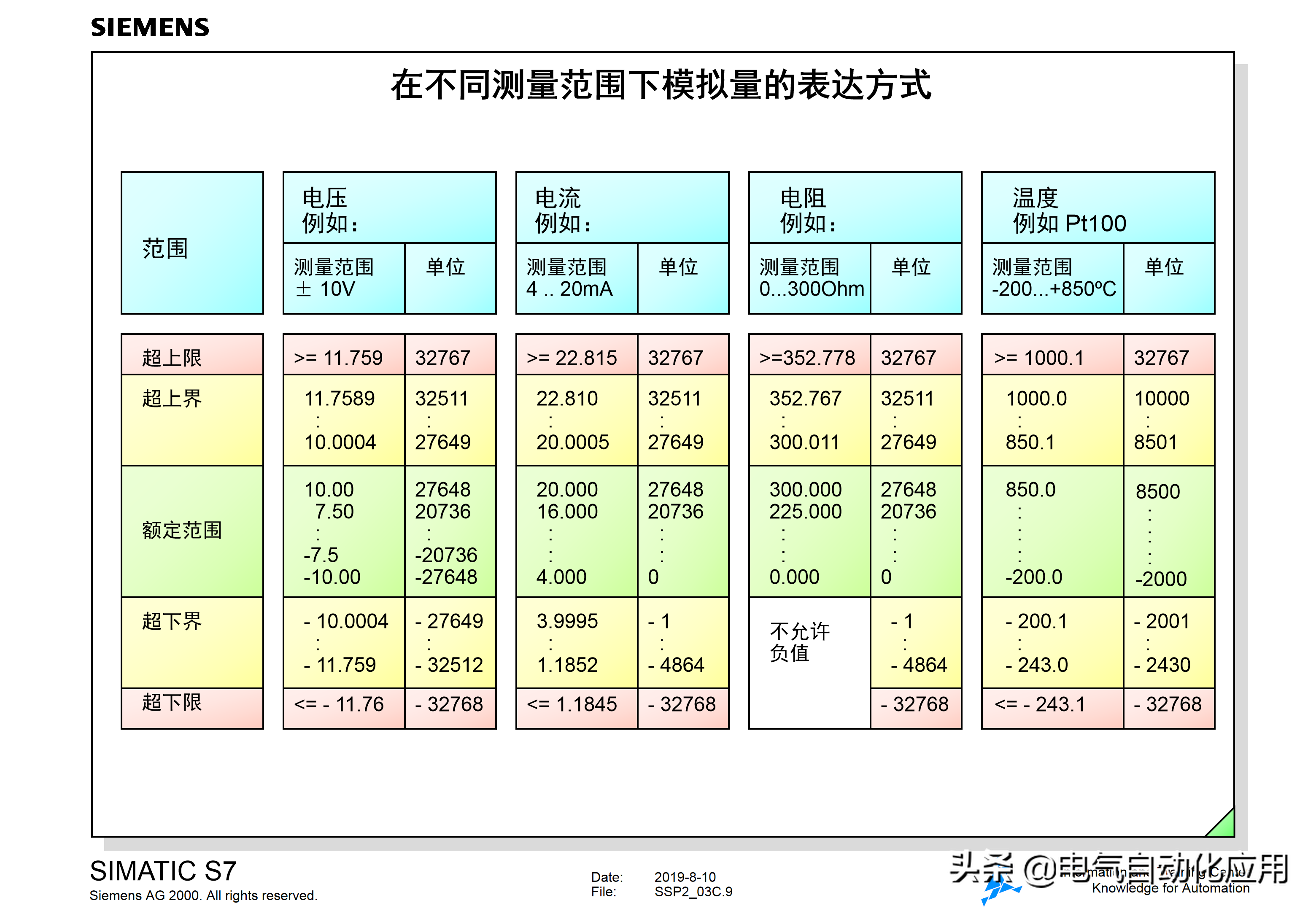 当然,西门子系列的模拟量拓展模块有很多,除了文中所用到的,还有很多其他的电压信号应用在不同领域。如下图所示。