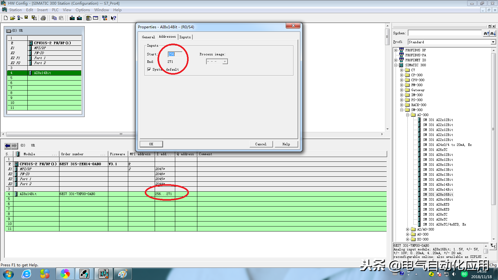 对于西门子S7-300系列来说,我们需要使用拓展模块,打开西门子STEP7,徐楠则合适的PLC和模拟量模块,并将模块添加进去。
