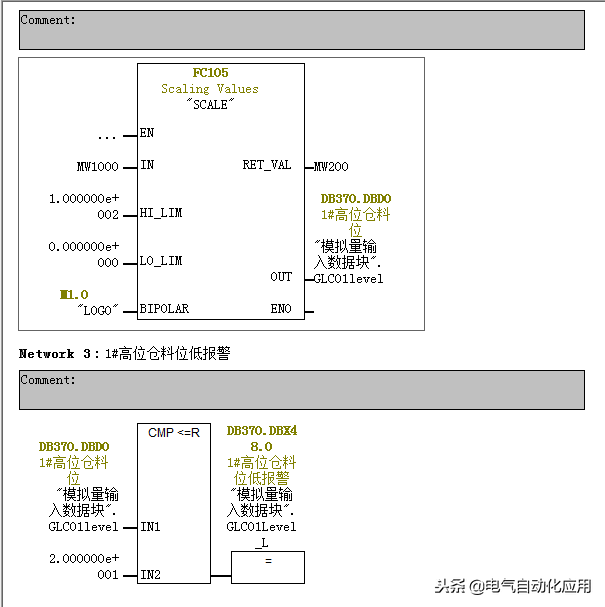 这时一个不太复杂的加料程序中的一部分,程序很容易理解,是一个在大料仓里面的雷达料位机,该项目中雷达料位计的特点是可以检测0.5-10米的原料料位,因为生产的原因该料仓需要保证一直有原料。