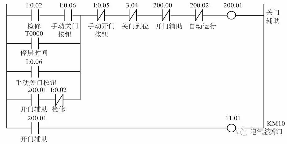 对于关门主要存在以下几种情况:检修关门;自动关门;提前关门。因而关门控制的梯形图如图11所示,其程序如表2所示。
