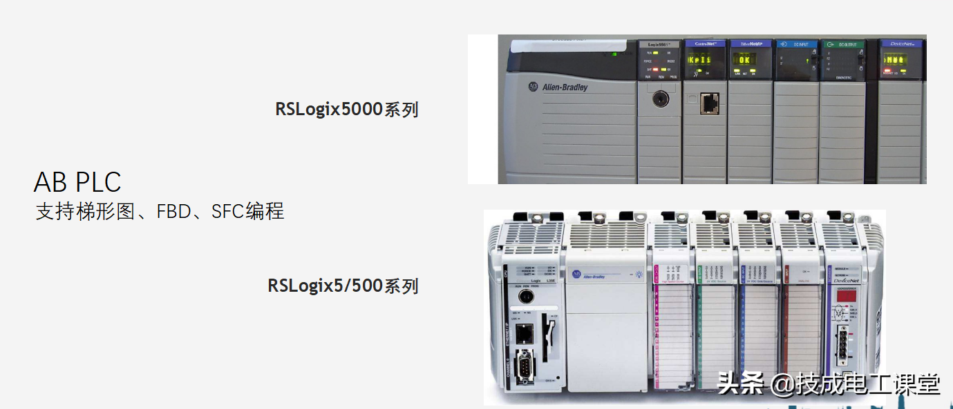 Rockwell的PLC产品主要指ALLEN-BRADLEY品牌。ALLEN-BRADLEY最早由Dr.Stanton Allen 和Lynde Bradley创建于1903年,早期的产品主要有自动启动器、开关设备、电流断路器、继电器。1985年,为获得多样性投资,AB出售给了Rockwell,成为其旗下重要品牌。AB的PLC与西门子齐名,产品约占美国市场的一半。AB产品规格齐全、种类丰富,主推中大型的PLC-5系列,为模块化结构。强大的通讯功能和稳定性,简单易用,但价格略贵。AB的PLC产品主要包括中大型ControlLogix PLC、小型MicroLogix PLC、FlexLogix PLC、老SLC 500 PLC及PLC-5系列等。