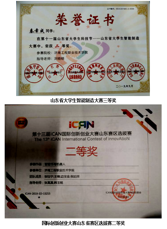 专业教师荣获中国机械工业科学技术奖1项,山东省科学技术奖1项,济南市科学技术奖1项,教师在山东省职业院校技能大赛高职教师组荣获三等奖2项。近三年内完成各类教改立项课题10余项,发表论文10余篇,主持完成各类教科研10余项。