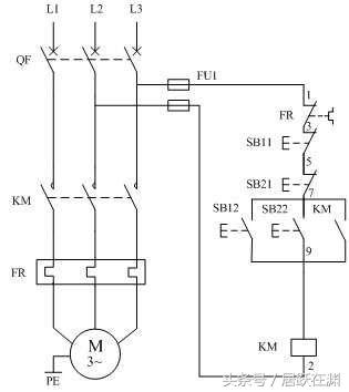 如上图所示的电动机两地控制电路,SB11和SB12分别为A地的停止和启动按钮,SB21和SB22分别为B地的停止和启动按钮。