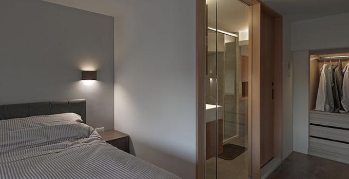卧室光线以柔和、暖色调为主。可用壁灯、落地灯来代替室内中央的顶灯,壁灯宜用表面亮度低的漫射材料灯罩,床头上方的墙壁,装一盏茶色刻花玻璃壁灯,具有古朴、典雅、深沉的韵味。床头柜上可用子母台灯,如果是双人床,还可在床的两侧各安一盏配上调光开关的灯具,以便其中一人看书报时另一人不受光的干扰。