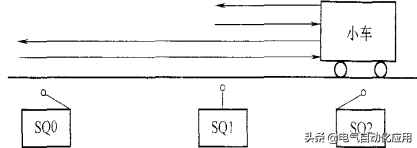 如图4-1所示,设小车在初始位置时停在右边,限位开关SQ2处于“0N”状态。按下起动按钮SB0后,小车向左运动,碰到限位开关SQl时,变为右行;返回限位开关SQ2处变为左行,碰到限位开关SQ0时,变为右行,返回起始位置后停止运动。