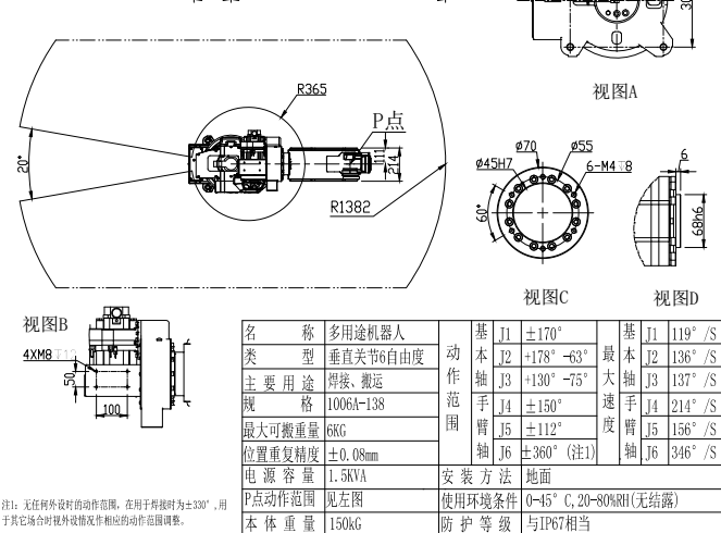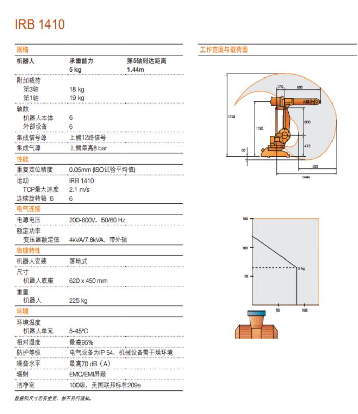 本工作站选用的ABB1410机器人本体为ABB公司的优质高性价比产品,该产品在国内外已经过实践应用考验,属成熟可信的优秀产品。