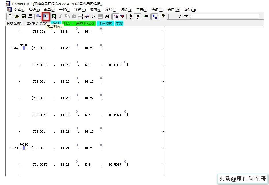 11、至此我们完成了松下PLC的通信连接、程序的上传和下载操作。