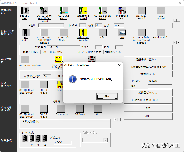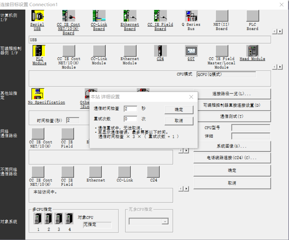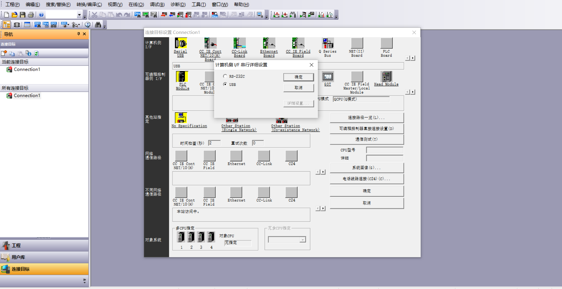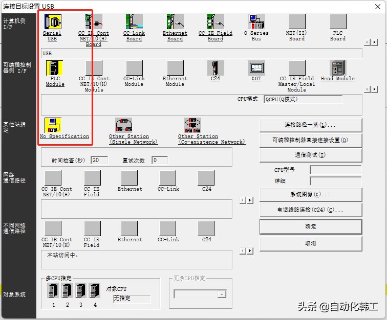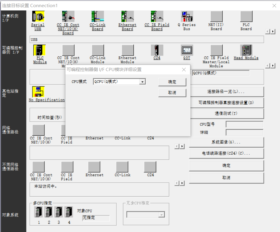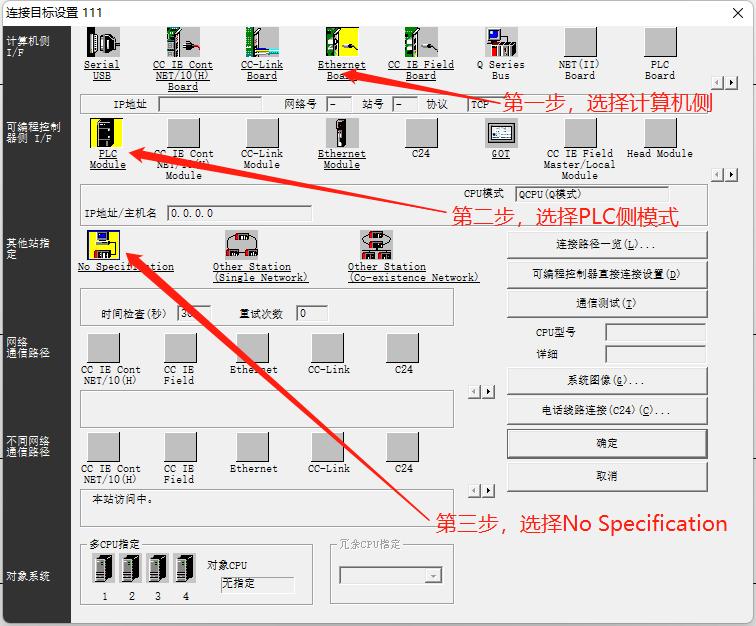 三菱Q系列PLC,一般有USB连接,自带以太网端口连接,以太网模块连接三种模式,今天就讲一下三种模式的连接流程