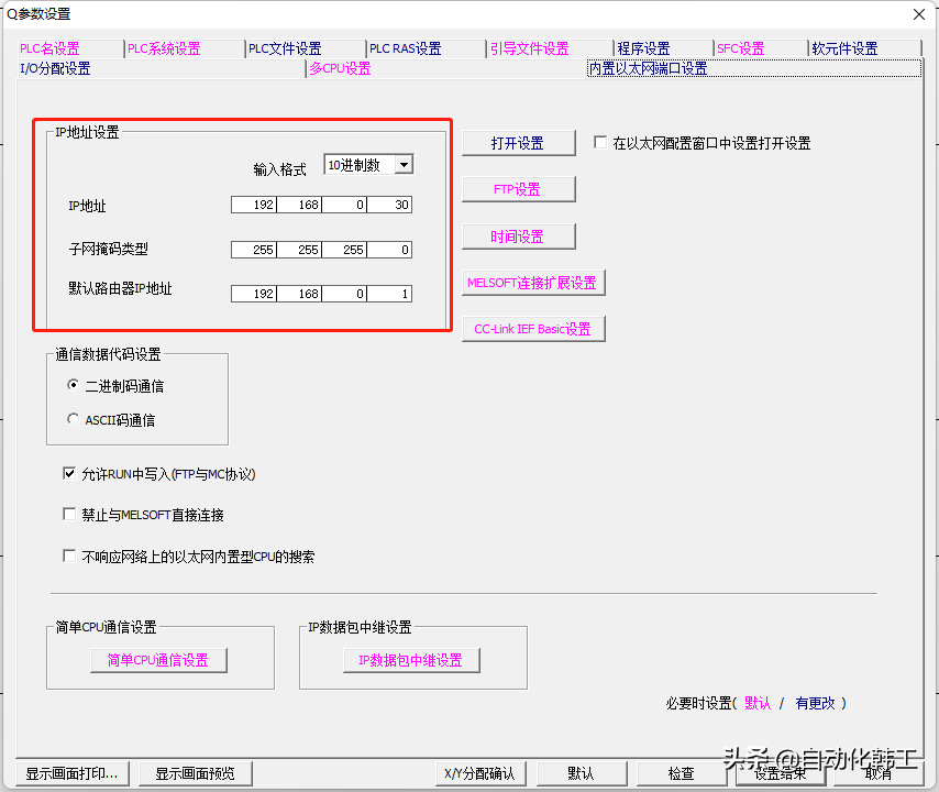 以上就是三菱PLC的连接和数据操作,初学者可以多试几次,通信连接不上时,可以尝试更换通信线,网络是否选择对等思路进行排查。