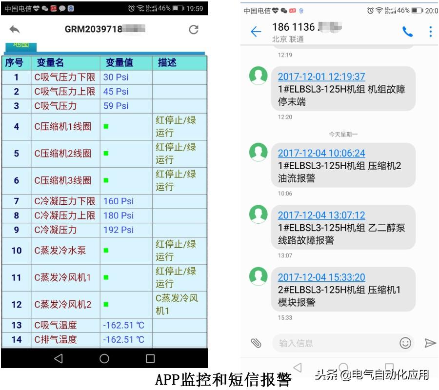 2、 制冷行业,现场西门子S7-200 SMART PLC,通过RS485接入巨控GRM530模块,工程师使用模块配置软件,选择PPI通讯协议,添加PLC寄存器地址,即可登录APP和微信监控数据,短信报警。远程中心电脑使用昆仑通态组态软件连上外网,不需要固定IP,通过OPC客户端与远程PLC通讯。