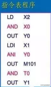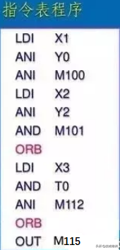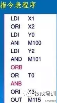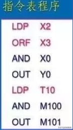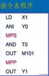 ANDANI触点的串联指令;;ORORI触点的并联指令;ORB串联电路的并联指令;ANB并联电路的串联指令;MPSMRDMPP进栈,读栈,出栈这个很少用;LDPLDF...
