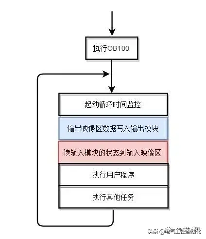 6. CPU调用OB1,执行用户程序,期间,根据需要可调用其他逻辑块(FB、SFB、FC及SFC),来实现控制任务;