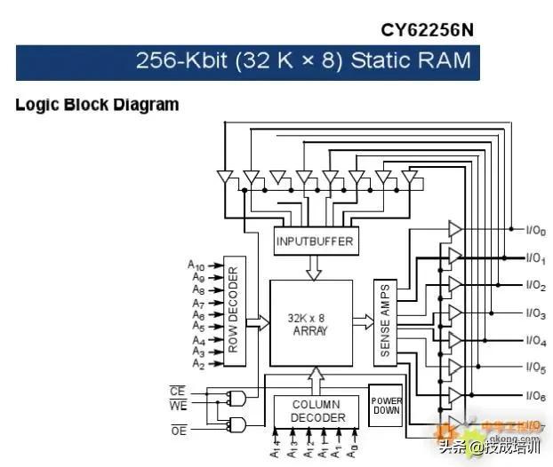 那么如何在这一堆房间里访问找到我需要的那个她呢?看上图中A0---A14,这就是地址线,就是访问这些房间的地址,通过这些房间就能访问M、T、C、V等等。