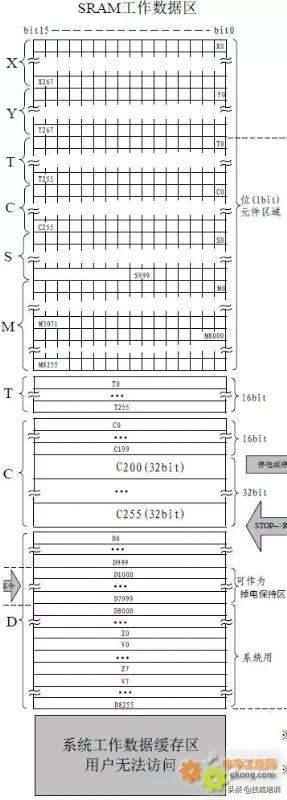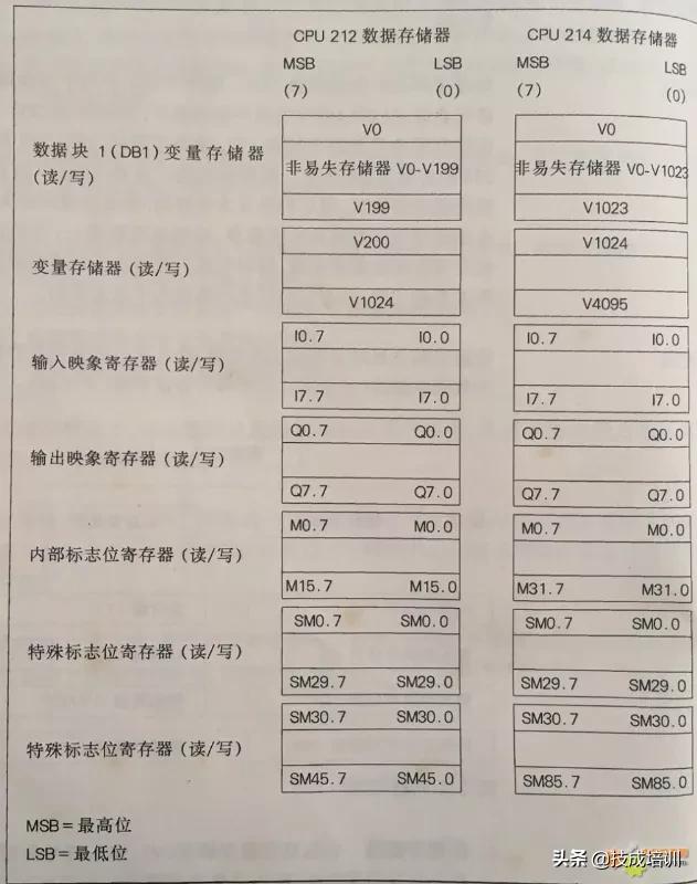 最近几天有某工友表示PLC编程中不用M和T。我发现大家有些观点有误,这段时间比较忙,但忍了很久,实在忍不住了,抽半天时间写篇文章。用不用先不说,首先得知道M和T究竟是什么?T有点特殊,先不谈,把M搞清楚了T就容易搞清楚。如果学过单片机或计算机原理或嵌入式等硬件课程的就不用看了,因为这是非常基础的概念,我今天不用电子技术的语言来说,所以语言会不太严谨,主要目的是用通俗易懂的语言让搞PLC的人听懂,请工友们手下留情不要把我脸打肿了。先说说我接触编程的过程,我是学硬件的,编程最先学的是51单片机和X86汇编,然后学C/C++,最后才学的PLC,编程掌握不好,即使到今天我也无法准确阐述什么是面向对象!先自己打脸,但这不影响我用PLC做项目。其实PLC是最像单片机的,完全就是单片机的硬件升级软件简化版本,扯远了!下图是西门子S7-200手册里关于存储器结构的介绍。左边这个RAM就是今天的主角。