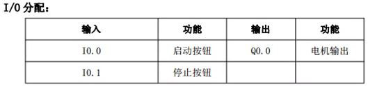 设计要求说明:当按下启动按钮时,电机就接通并保持输出;当按下停止按钮时,电机断开。接口分配如下图: