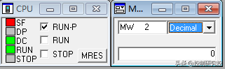 这个图片是将M20.0置1,程序第1行也接通,从这个图片上看到PLC还是在运行,ENO还是输出了,这是和西门子200系统不一样的地方,但是MW2的值此时为0,显然是不对的,所以PLC还是给出了提示: