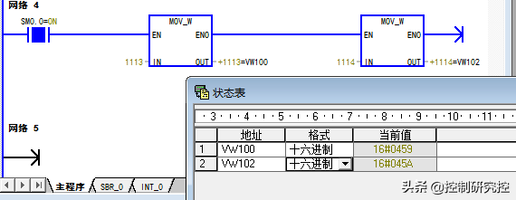 这个图片是值运行程序第2行,整数16通过BCD_I指令后结果也是10,证明是和西门子200中的算法一样的。