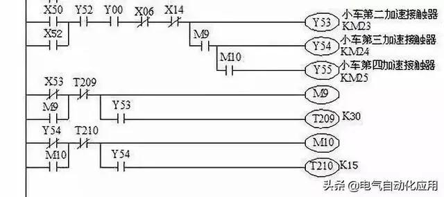 无论多么复杂的梯形图,都是由一些基本单元构成的。按主电路的构成情况,利用逆读溯源法,把梯形图和指令语句表分解成与主电路的用电器(如电动机)相对应的几个基本单元,然后一个环节、一个环节地分析,最后再利用顺读跟踪法把各环节串起来。