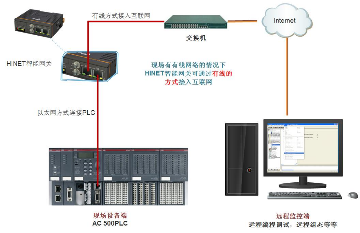 5 硬件连接,HINET智能网关LAN口连接 PLC,WAN口连接互联网;