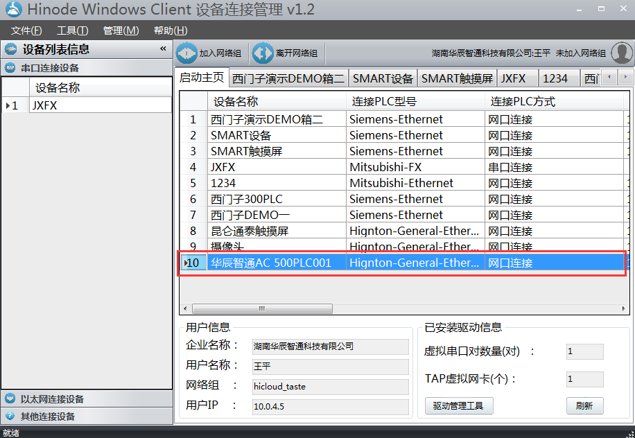 8 进入客户端首页即可看到刚才新建的那台AC 500PLC;