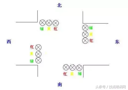 十字路口的交通指挥信号灯布置: