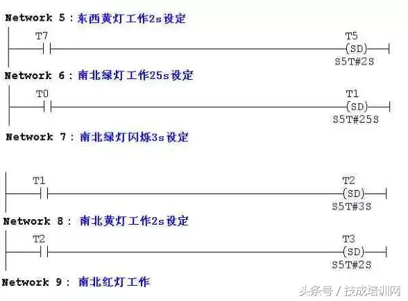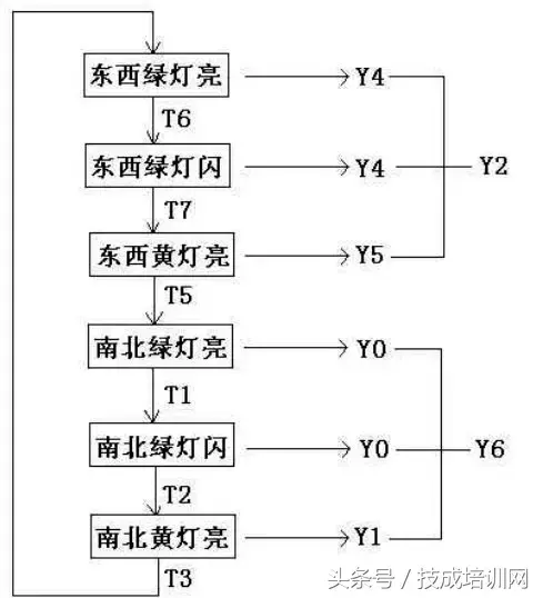 (5)以上南北、东西信号灯周而复始地交替工作状态,指挥着十字路口 的交通,其时序如下所示。