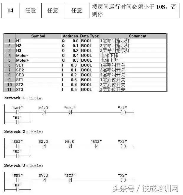 电梯的上升、下降由一台电动机控制;正 转时电梯上升、反转时电梯下降。各层设一个呼叫开关(SB1、SB2、SB3)、 一个呼叫指示灯(H1、H2、H3)、一个到位行程开关(ST1、ST2、ST3)。