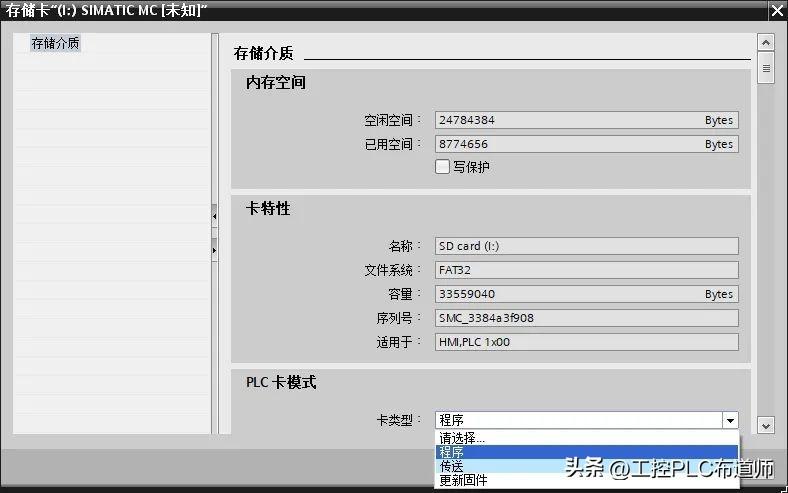 3. 鼠标选中“属性”后打开存储卡,设置卡类型:程序。如图9 所示: