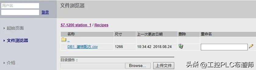 注意:如果配方DB名称含有中文字符,例如本例的"DB1_蛋糕配方",如果TIA PORTAL版本在V14以前,则无法下载,可以通过右边重命名为只有字母和数字的名称后下载,修改后上传文件前,需要将文件名改为原来正确的名字。