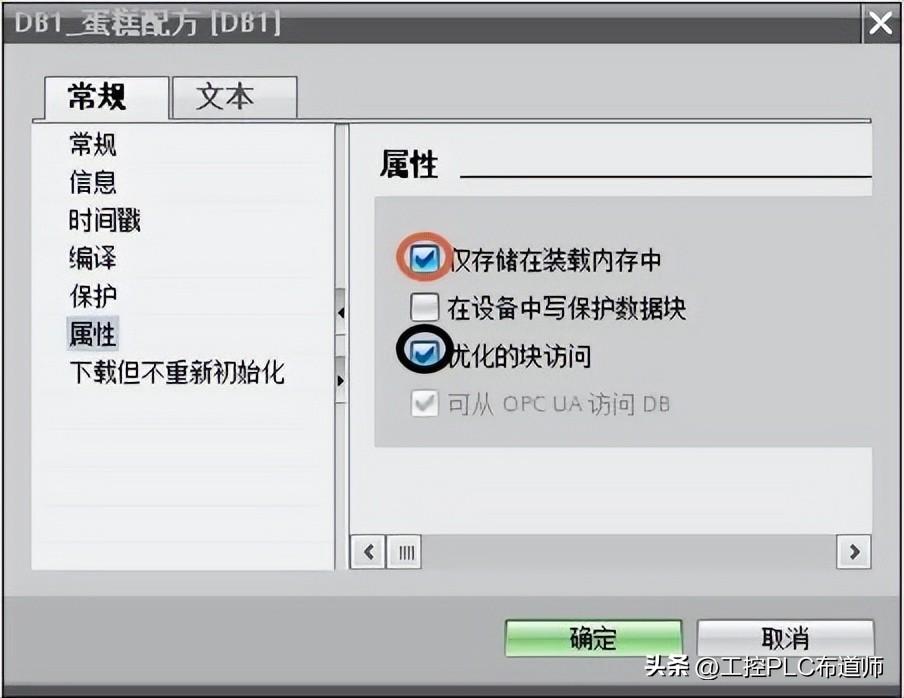 对于图3的优化的块访问选项,一般默认激活,因为从S7-1200 V4.2起,对于仅存储于装载存储器的优化块的大小限制为256kB,而仅存储于装载存储器的非优化块仅有64kB,显然优化块可以存储更多的配方记录,如果单个配方数据太多,需要放在多个DB中,也可以减少DB块个数。