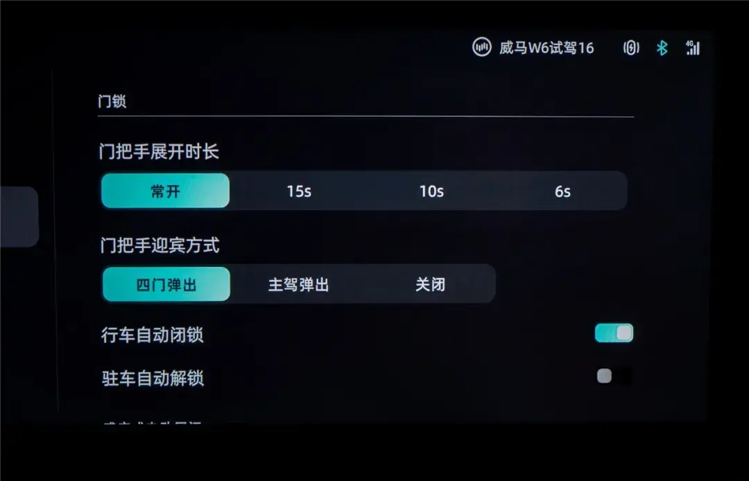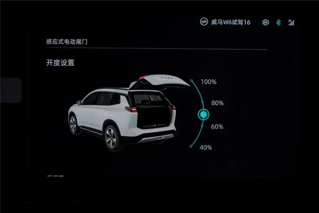 威马W6此次还优化了设置功能,目前已支持三套模式的下电记忆,上电后不需要再调节车辆运行状态。点击主页车模,即可在“全屏车模界面”对诸多功能进行快捷调整,包括自动驻车、陡坡缓降、能量回收、转向力度、踏板力度、大灯高度、尾门开闭等。