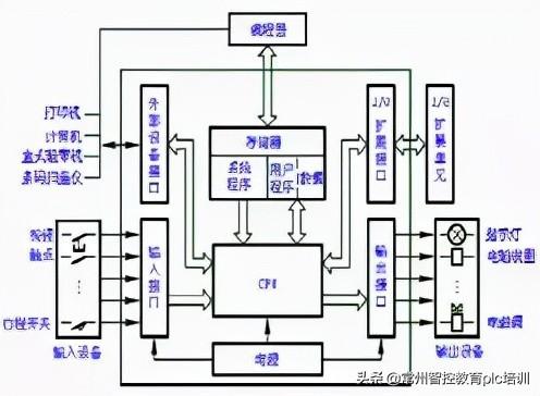 可编程逻辑控制器实质是一种专用于工业控制的计算机,其硬件结构基本上与微型计算机相同,基本组成如图所示。