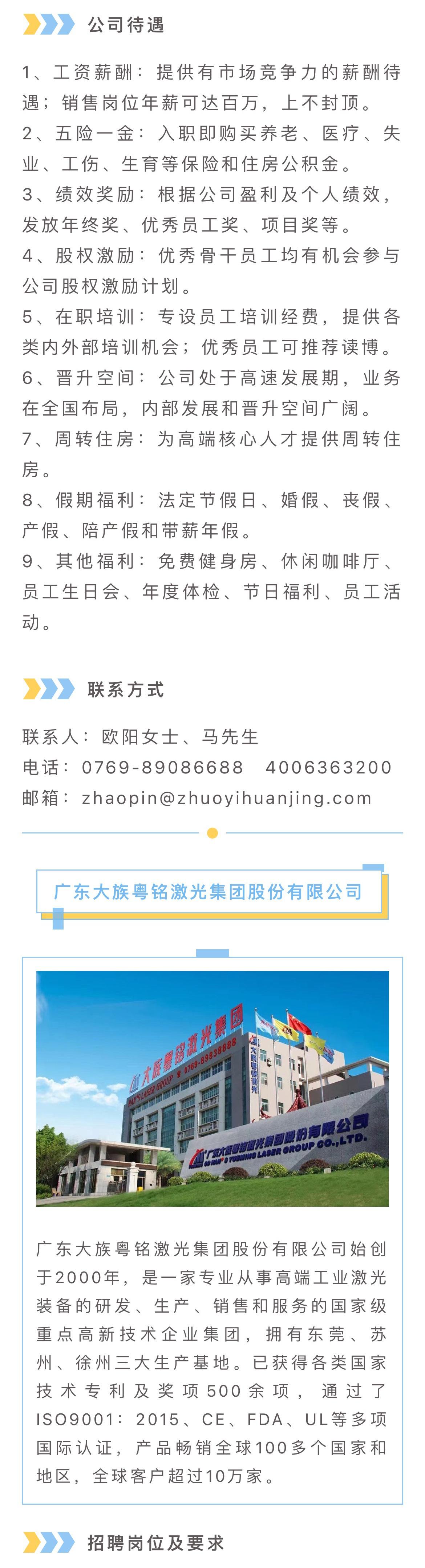 3、3年及以上自动化或机械设备类产品销售经验,有同类激光设备销售经验者可优先考虑;