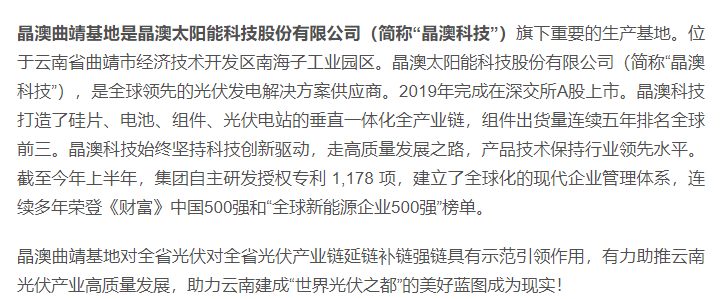 今天给大家分享的是曲靖晶澳太阳能科技有限公司 的招聘信息!