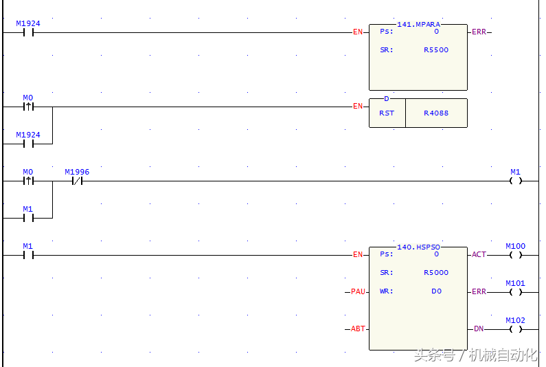 如果是以上情况的话,其实也简单,PLC的非保持寄存器在断电时都会自动归0,利用这一特性写一段指令,当上电时即判定当前为停机状态,并自动复位设备。还有一个...
