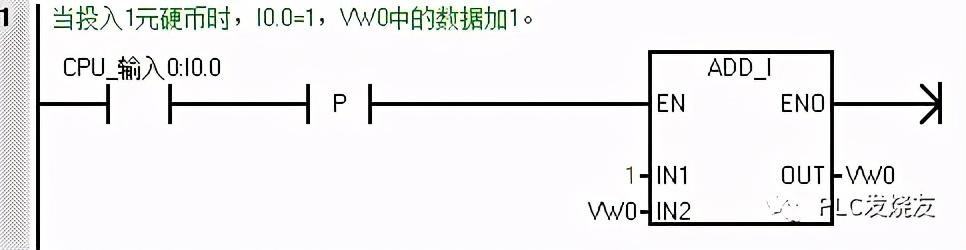 第一步: (当投入1元硬币时,I0.0=1,VW0中的数据加1。)