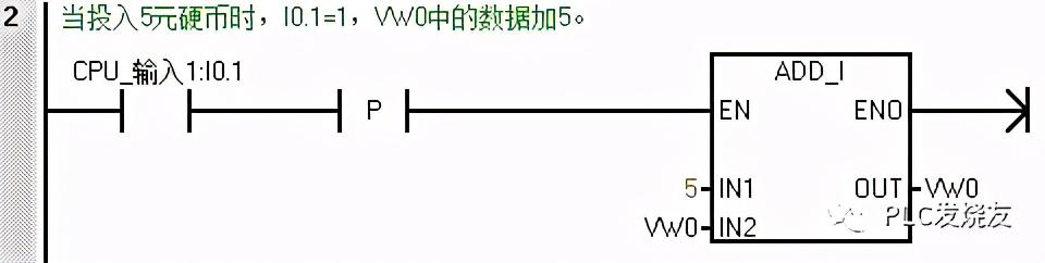 第一步: (当投入1元硬币时,I0.0=1,VW0中的数据加1,当投入5元硬币时,I0.1=1,VW0中的数据加5,当投入10元硬币时,I0.2=1,VW0中的数据加10。)