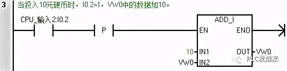 第三步: (当投入10元硬币时,I0.2=1,VW0中的数据加10。)