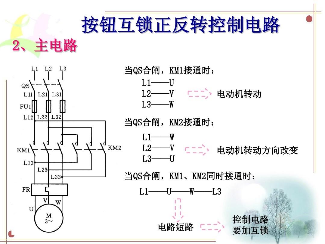 2,按钮互锁正反转控制的主电路。