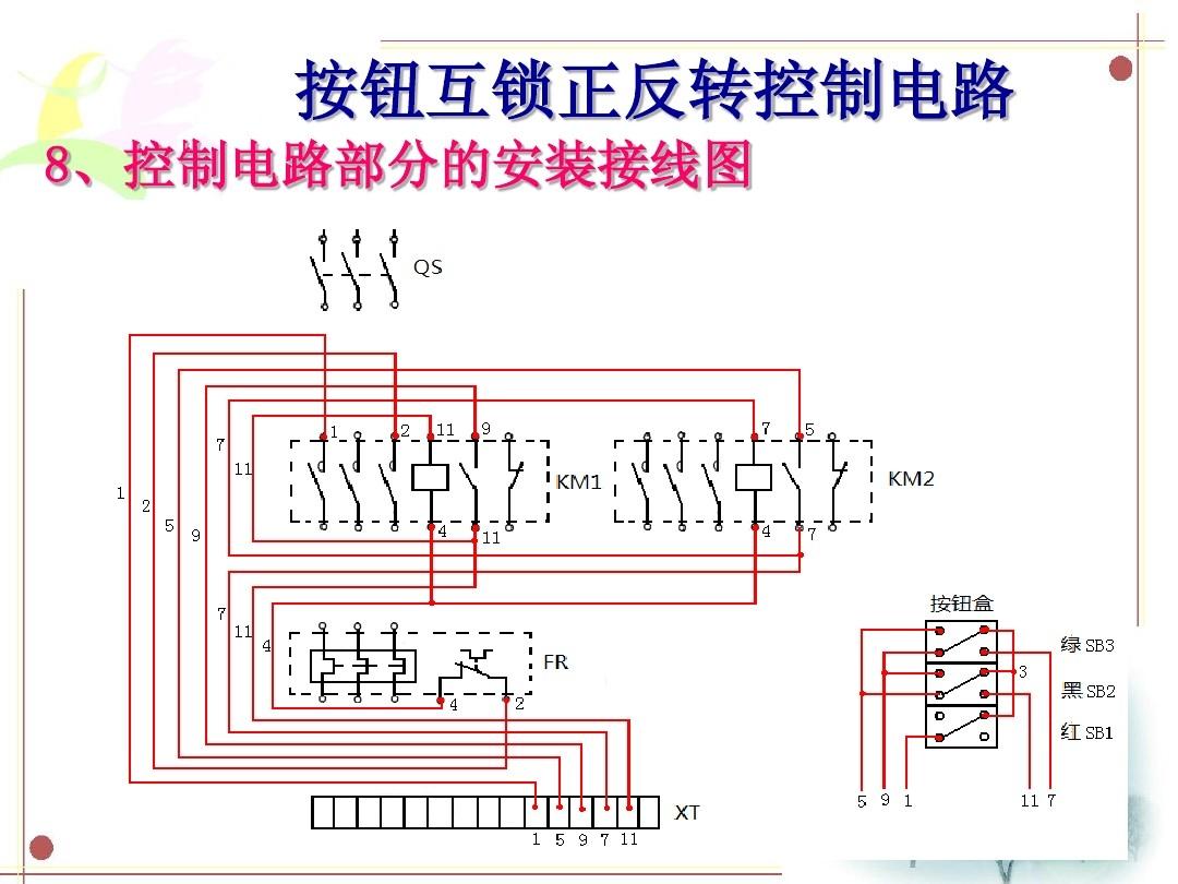 8,按钮互锁正反转控制电路实物接线图。