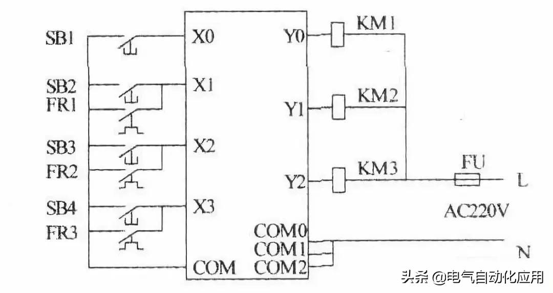 继电器电路图中的交流接触器和电磁阀等执行机构用PLC的输出继电器来控制,它们的线圈接在PLC的输出端。按钮、控制开关、限位开关、接近开关等用来给PLC提供控制命令和反馈信号,它们的触点接在PLC的输入端。